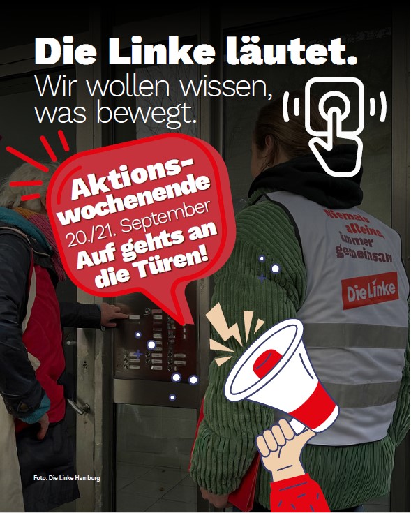 Am Aktionswochenende 20./21. September 2025 wollen wir landesweit an den Haustüren läuten und unsere Fragen stellen. Macht mit!